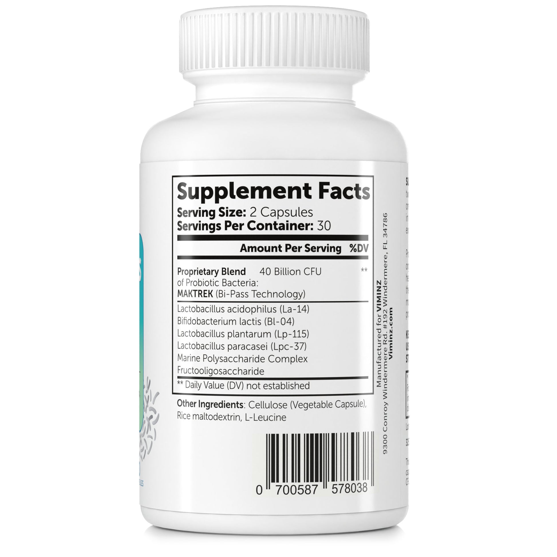 40 billion CFU of probiotic bacteria (MAKTREK Bi-Pass Technology)