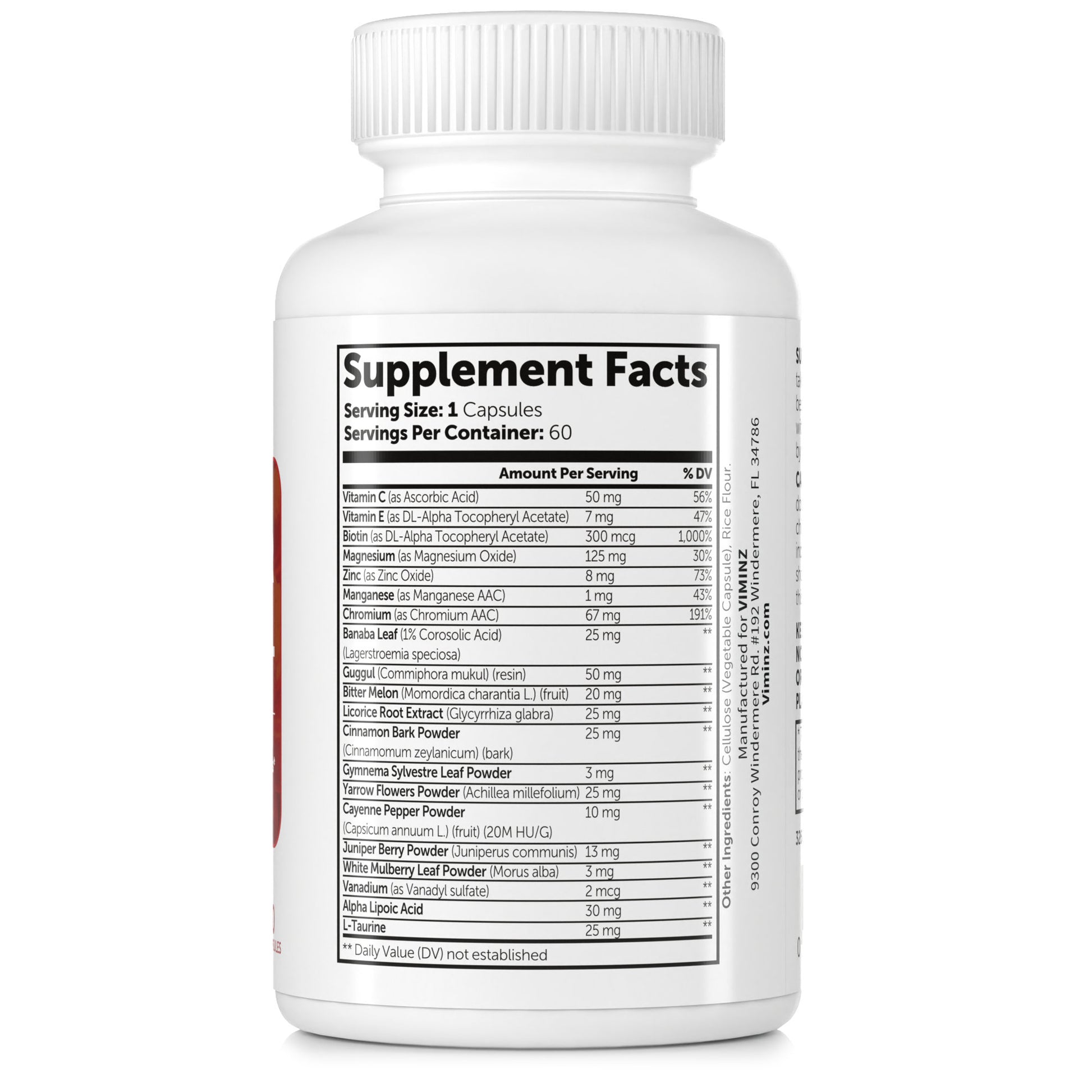 Soutient une glycémie saine : Il a été démontré que la combinaison d'ingrédients, dont la biotine, le chrome, la cannelle et le gymnema sylvestre, aide à réguler la glycémie et à maintenir un métabolisme sain du glucose.